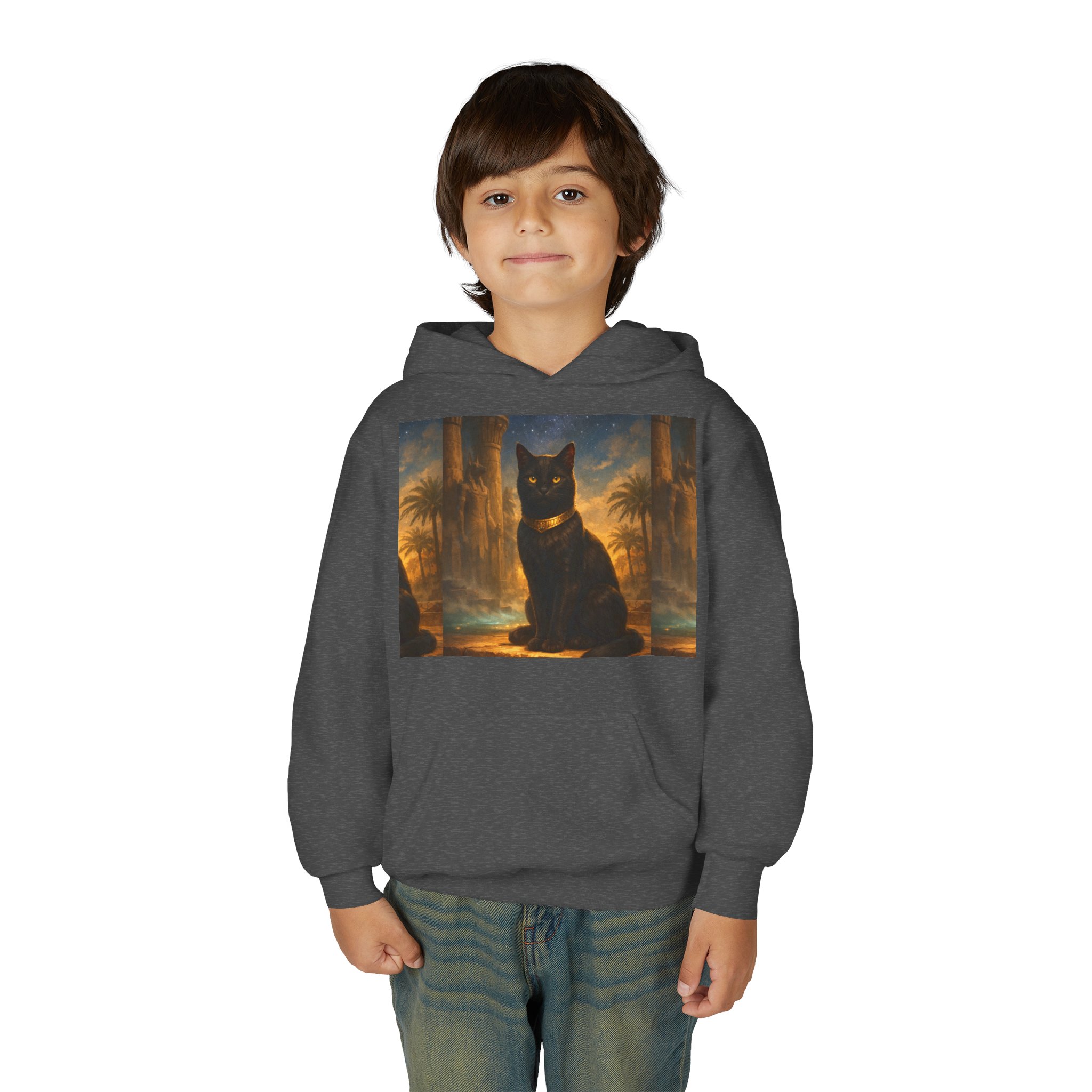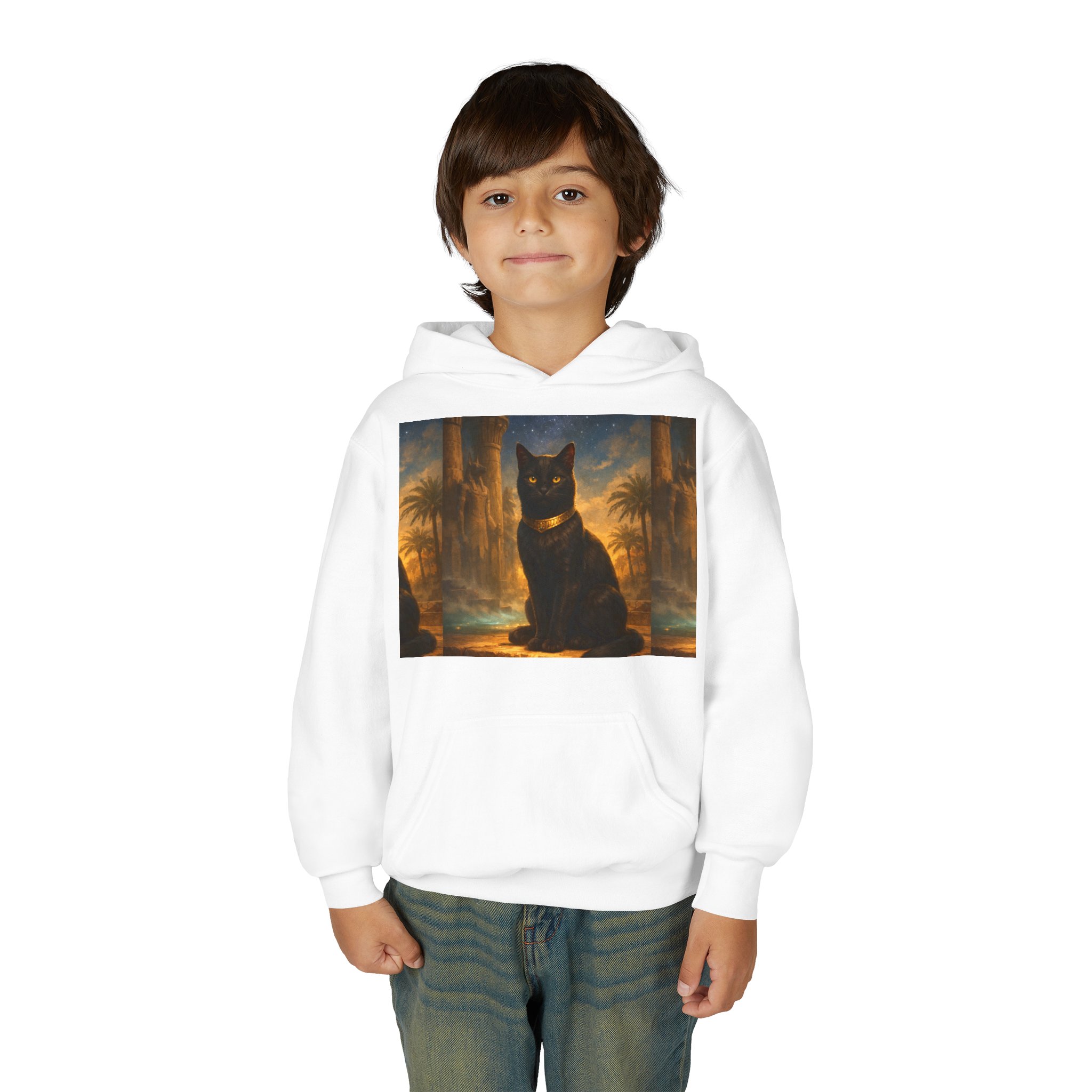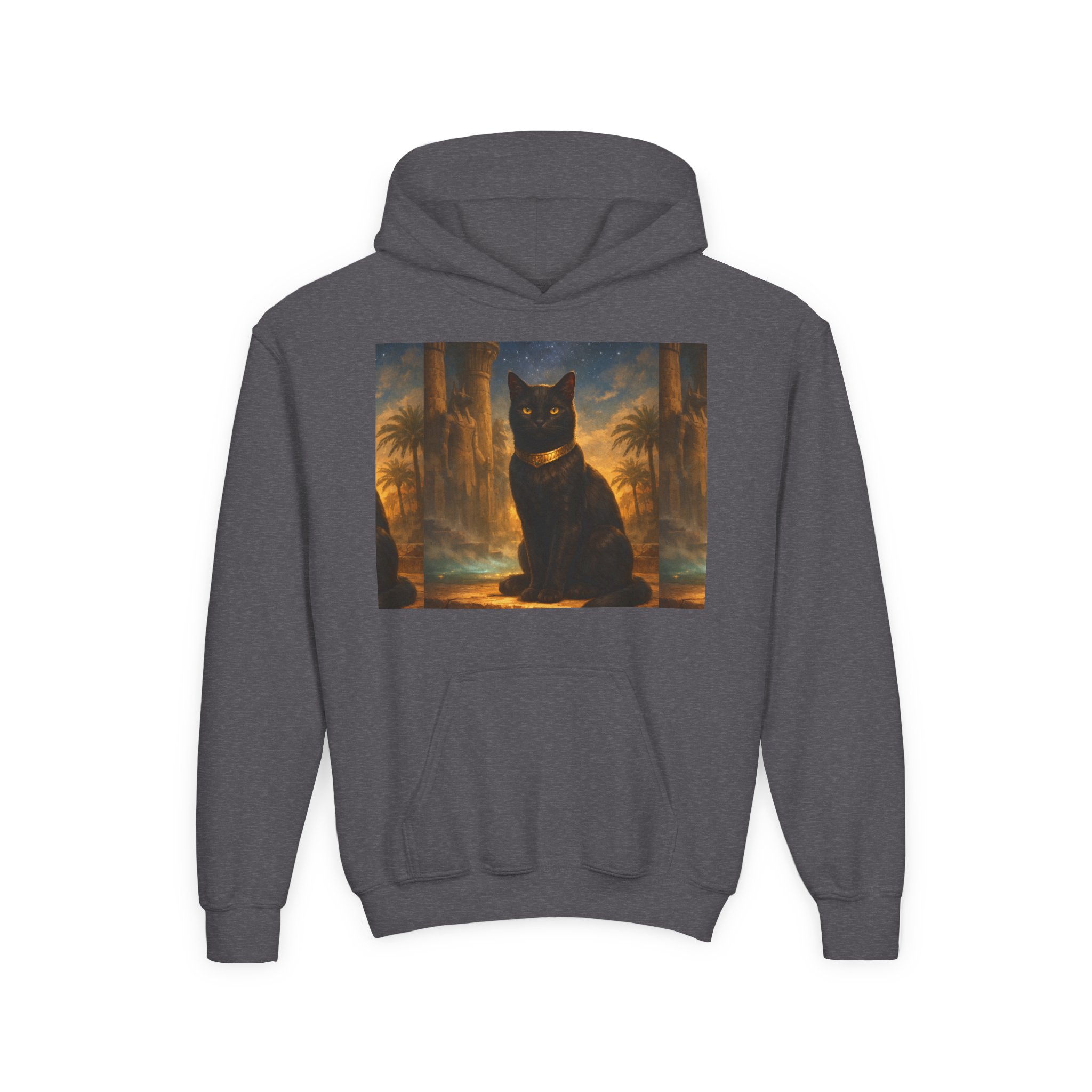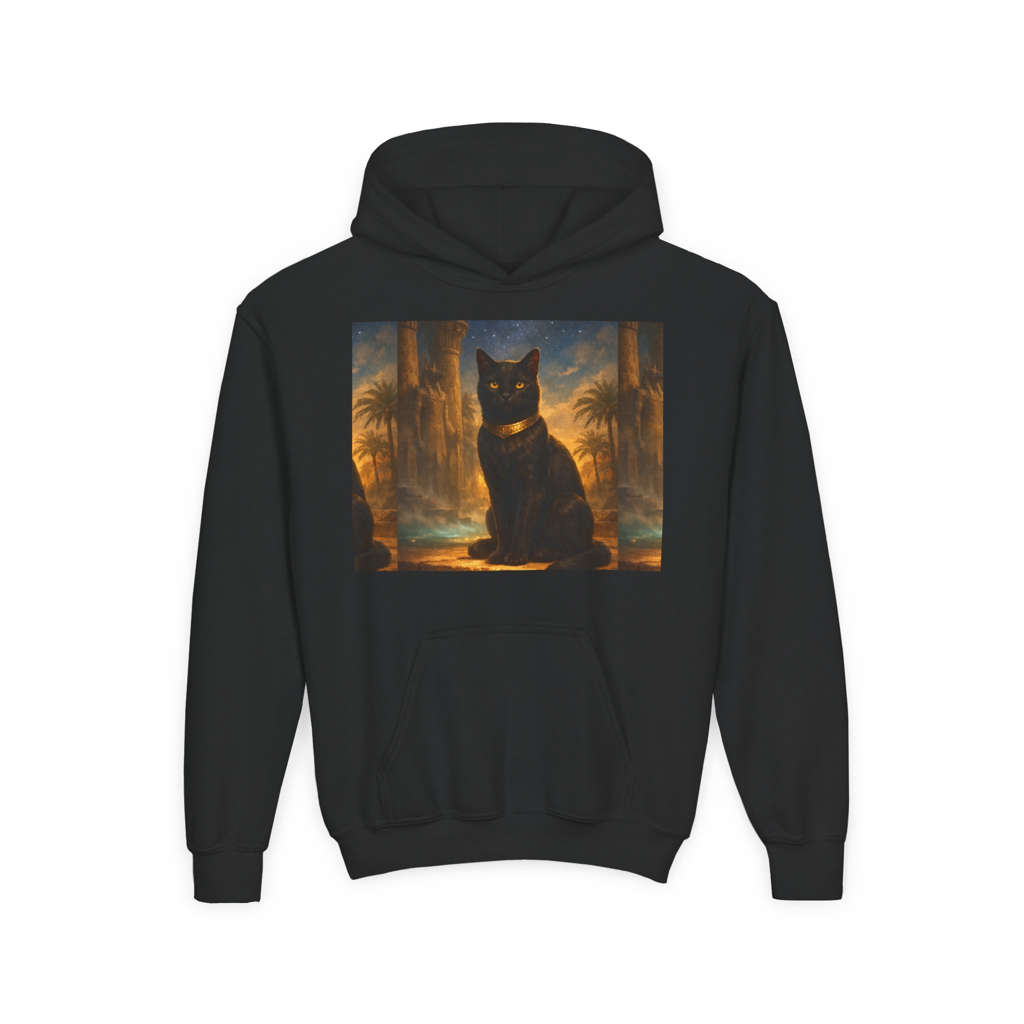 Youth Black Cat Hoodie — Mystical Egyptian Cat Graphic Sweatshirt