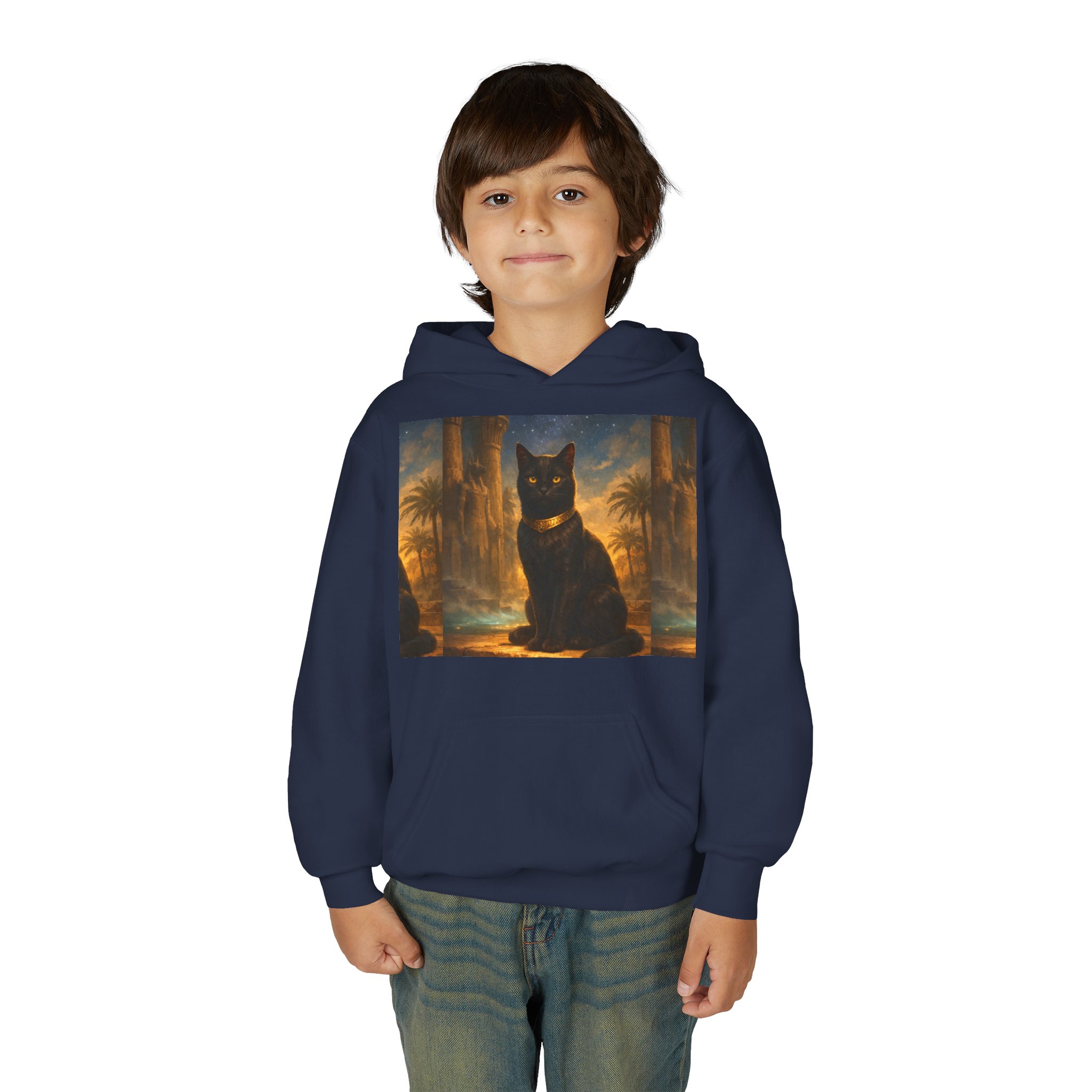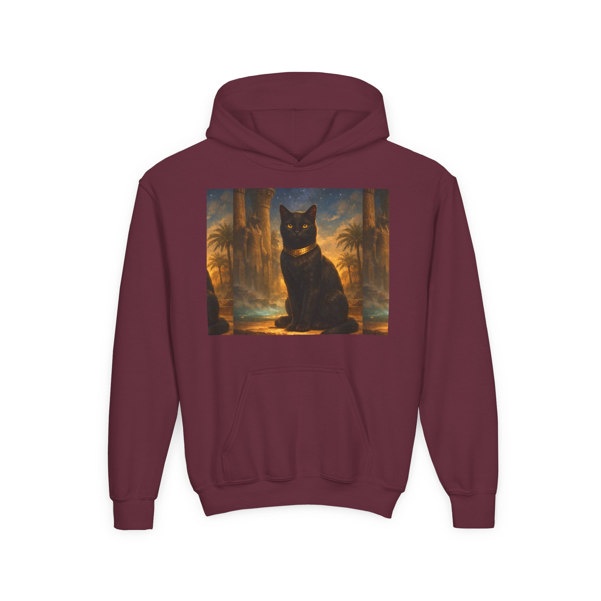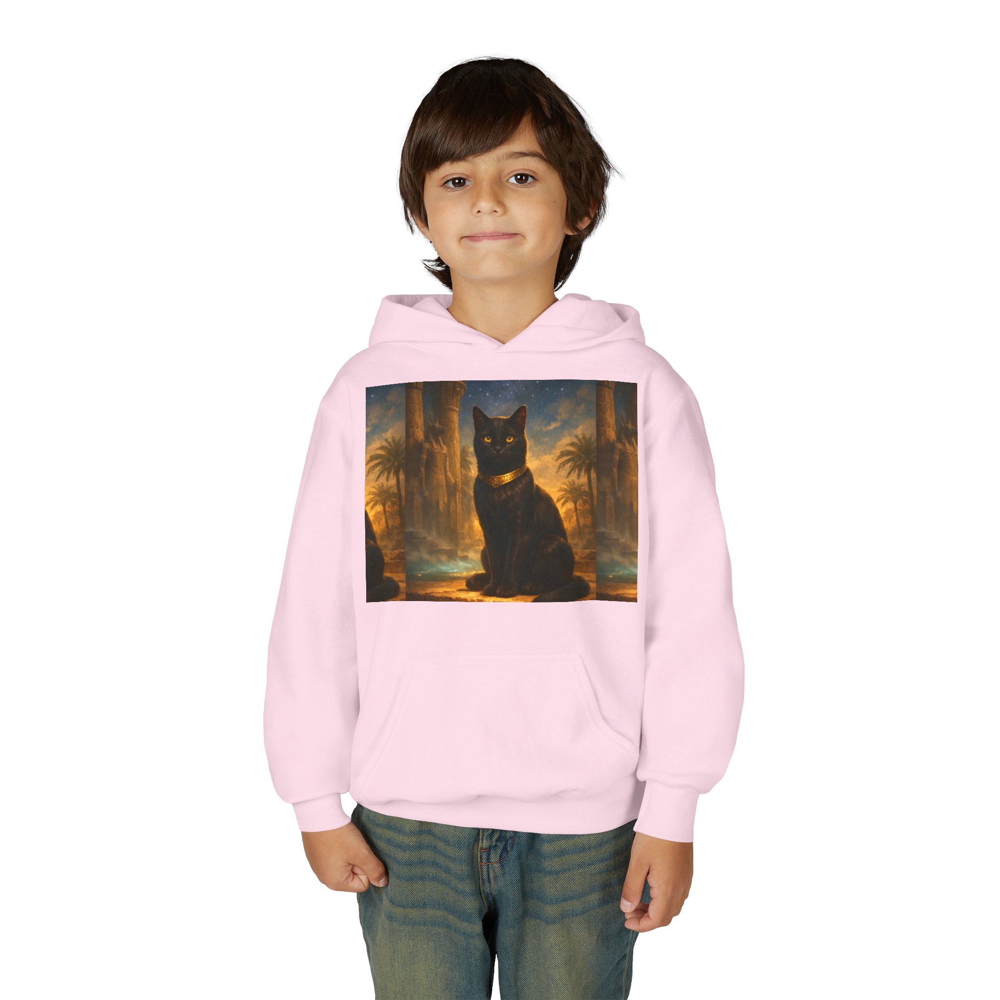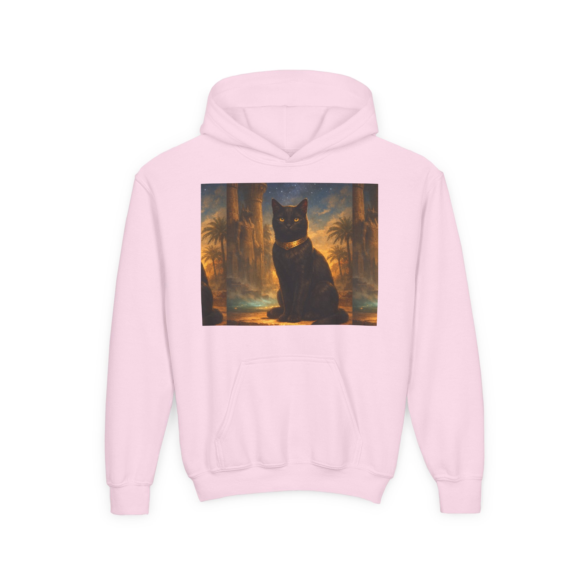 Youth Black Cat Hoodie — Mystical Egyptian Cat Graphic Sweatshirt