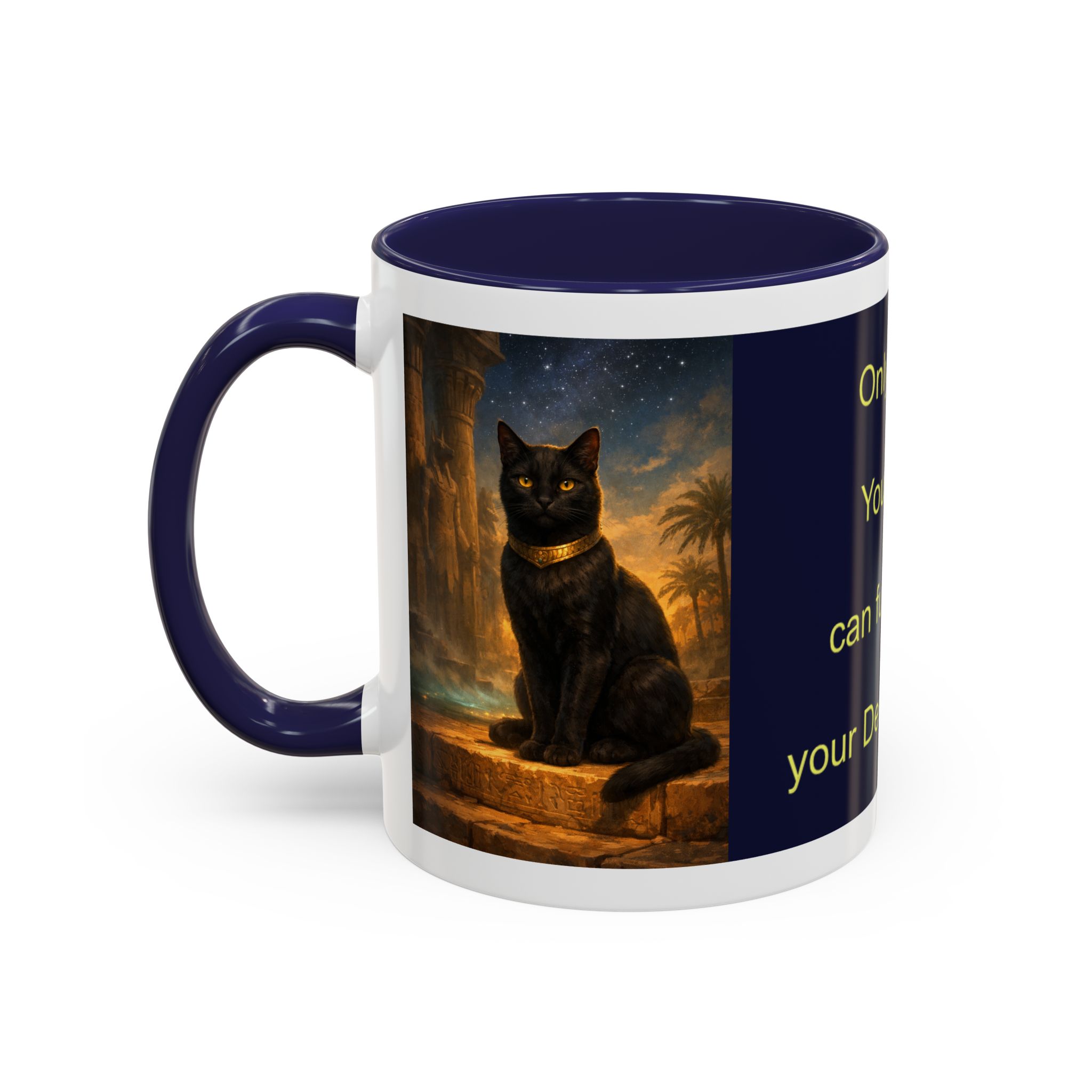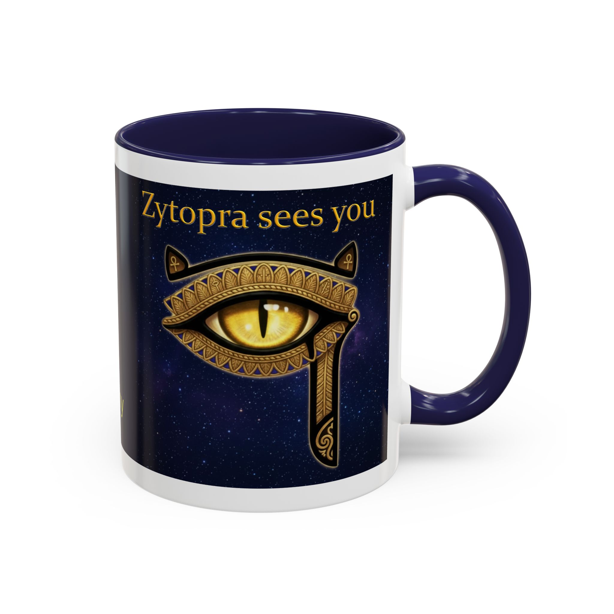 Wake into a quiet morning with a steady hand around this glossy ceramic mug. Deep navy panels cradle a single, ancient eye rendered in gold—an emblem that reads like a private reminder: your choices shape the path ahead. The contrast-colored interior and handle give each sip a little ceremony, while the crisp gold lettering—’Only you can fulfill your Destiny’ and ‘Zytopra sees you’—feels like a whispered charge before the day begins. It’s the sort of cup that settles on a desk during planning sessions, travels with you between bookstore corners and studio lights, and returns home stained with notes from a life being intentionally lived.